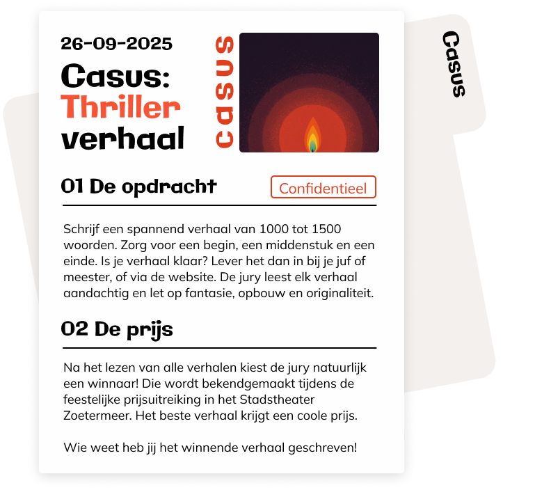 Neem eens de tijd om goed rond te kijken. Overal zitten namelijk verhalen verstopt! Zie je een oud koffiekopje? Misschien is het een toverbeker. Of kijk naar je huisdier en bedenk: Wat als hij ’s nachts op avontuur gaat zonder dat iemand het weet? Alles wat je ziet, kan het begin zijn van een supercool verhaal. Ook als het in eerste instantie niet zo lijkt!